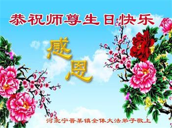 河北省邢台市宁晋县某镇全体大法弟子恭祝师尊生日快乐!
