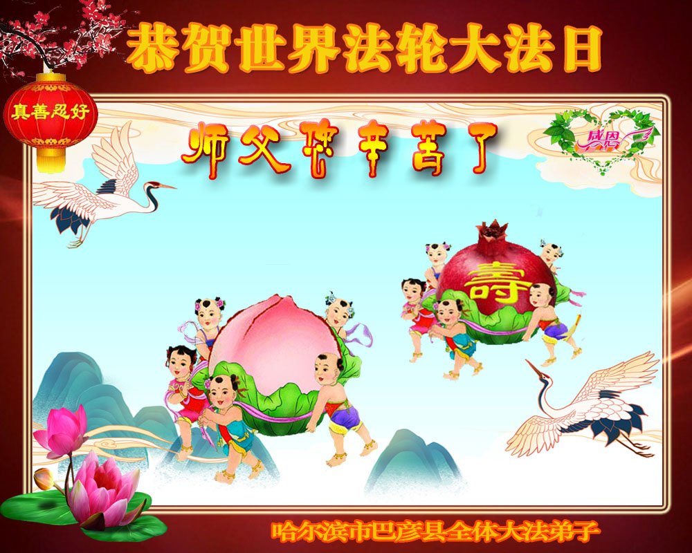 黑龙江省哈尔滨大法弟子恭祝慈悲伟大的师尊生日快乐!普天同庆世界法轮大法日!庆祝法轮大法洪传二十九周年!
