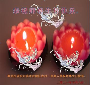 黑龙江省哈尔滨市双城区一家三位大法弟子恭祝师尊生日快乐!