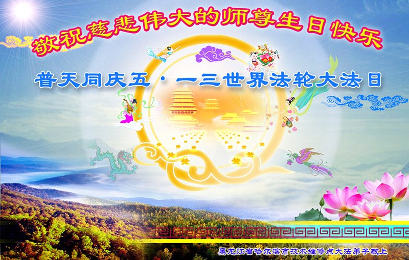 黑龙江省哈尔滨市技术维修点大法弟子恭贺五一三世界法轮大法日暨敬祝师尊华诞!