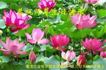 黑龙江省哈尔滨市大法弟子及全家恭祝师尊生日快乐!