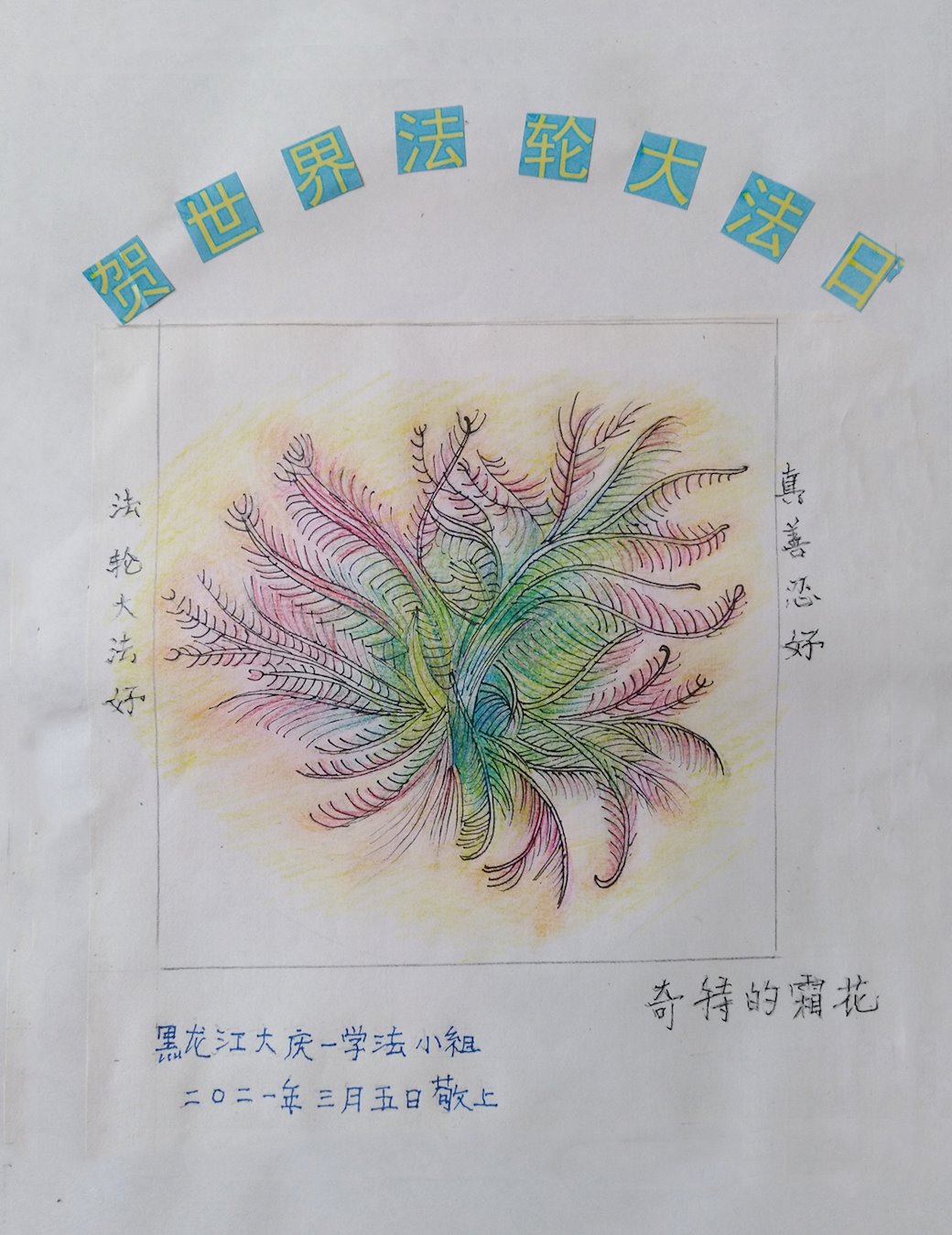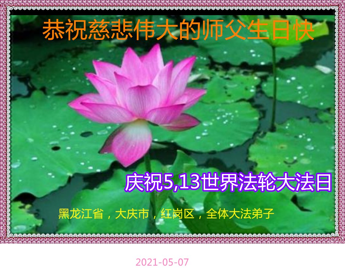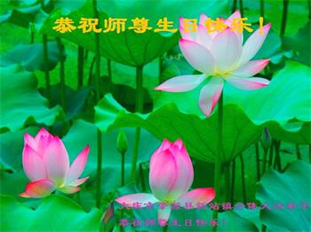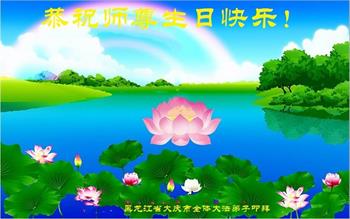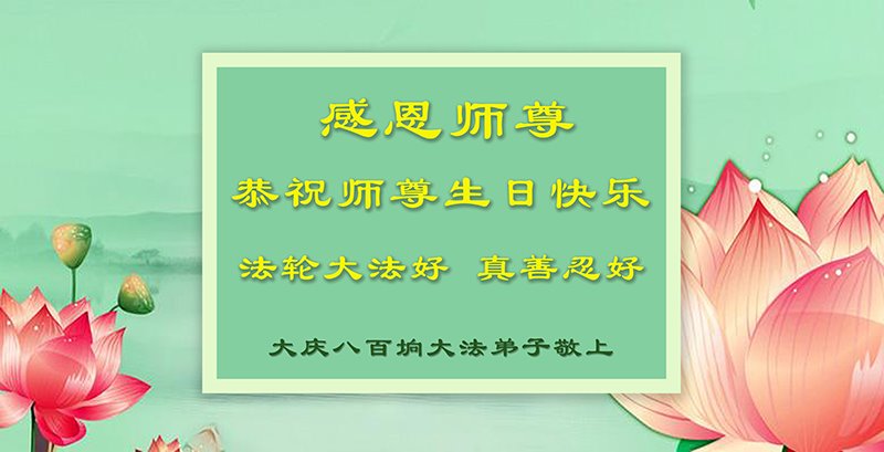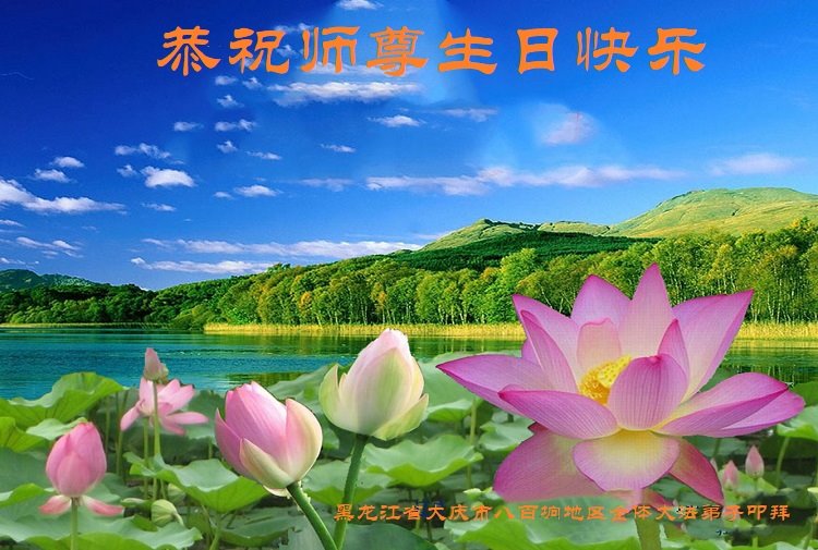 在慈悲伟大的师尊华诞暨世界法轮大法日即将到来之际,黑龙江省大庆创业城大法弟子无比感动,非常幸运能得到这万古机缘难遇的高德大法。弟子会谨记恩师教诲,在这所剩不多稍纵即逝的正法修炼路上精進的做好三件事,让更多有缘来到这个世间的众生明真相,选择美好的未来,回报难以回报的师恩。 惟愿师尊笑!叩拜师恩! 黑龙江省大庆创业城大法弟子敬上! 黑龙江省大庆大法弟子恭祝世界法轮大法日!恭祝师尊生日快乐!弟子跪拜!
