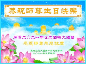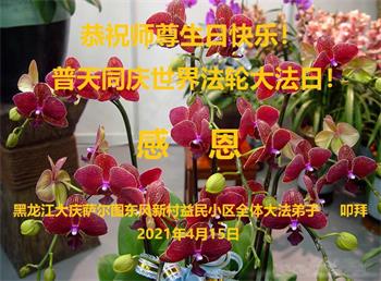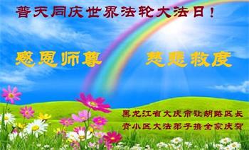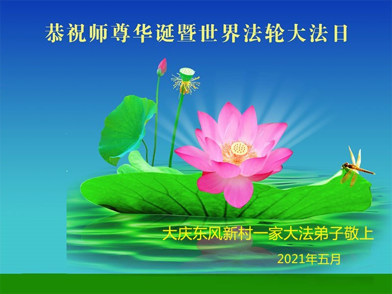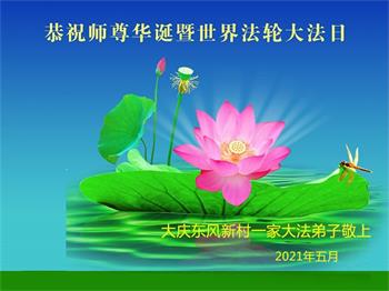 黑龙江省大庆东风新村一家大法弟子恭贺师尊华诞暨世界法轮大法日!