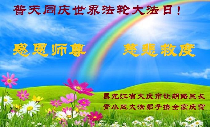 黑龙江大庆市红岗区全体大法弟子恭贺世界法轮大法日!