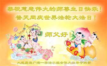 辽宁省大连大法弟子恭祝师尊生日快乐!庆祝世界法轮大法日!