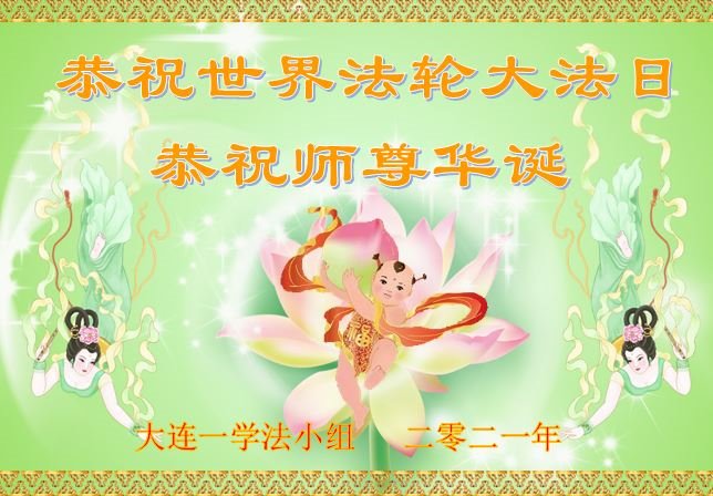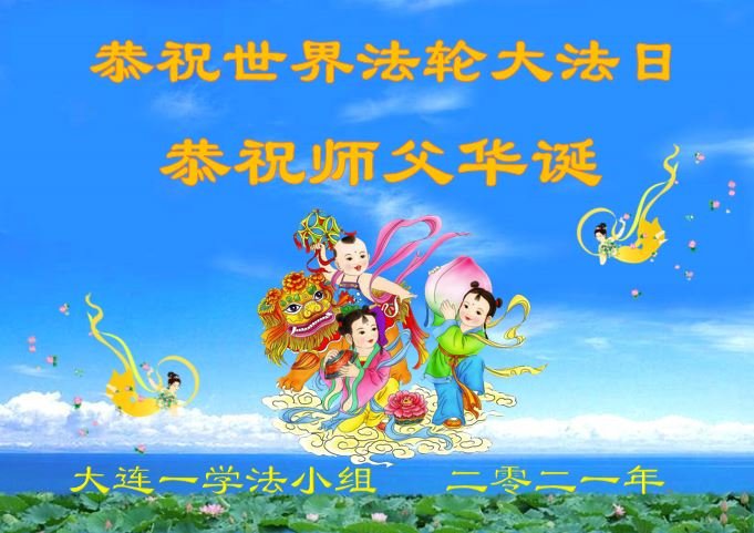 【明慧网二零二一年五月十一日】 辽宁省大连一学法小组恭贺世界法轮大法日!恭贺师尊华诞!