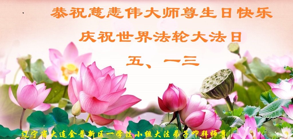 辽宁省大连金普新区一学法小组大法弟子恭祝慈悲伟大师尊生日快乐!庆祝世界法轮大法日!