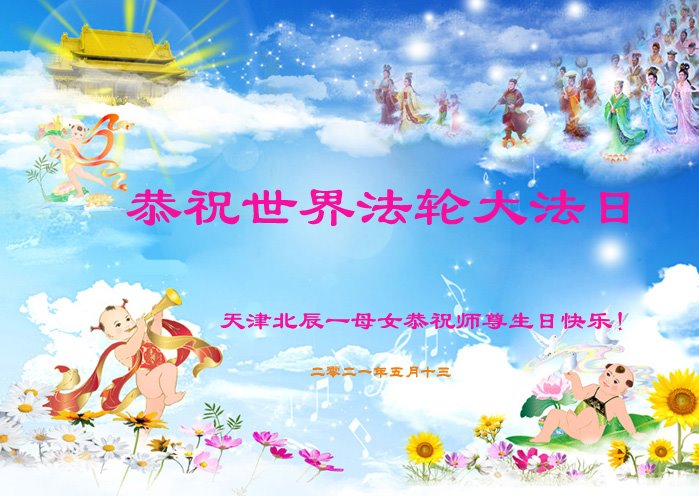 天津市大法弟子三姐妹叩拜师尊!恭祝慈悲伟大的师尊生日快乐!普天同庆世界法轮大法日! 天津市北辰区大法弟子敬祝慈悲伟大的师尊生日快乐!庆祝五一三法轮大法日!