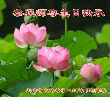 天津市大法弟子三姐妹慈悲伟大的师尊生日快乐!