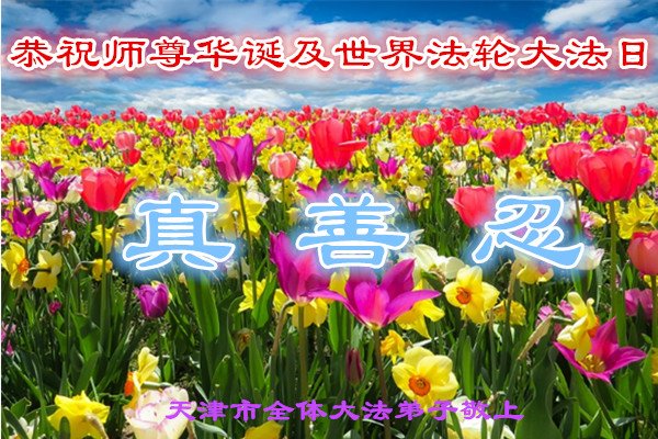 在这历史的伟大时刻,我们谨记师父的教诲,走正修炼的路,兑现誓约,完成使命,多救人,报答师父的慈悲救度。 天津一大法弟子恭祝慈悲伟大的师尊华诞暨世界法轮大法日!