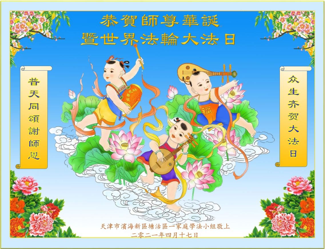 天津市滨海新区塘沽区一家庭学法小组大法弟子恭贺师尊华诞暨世界法轮大法日!