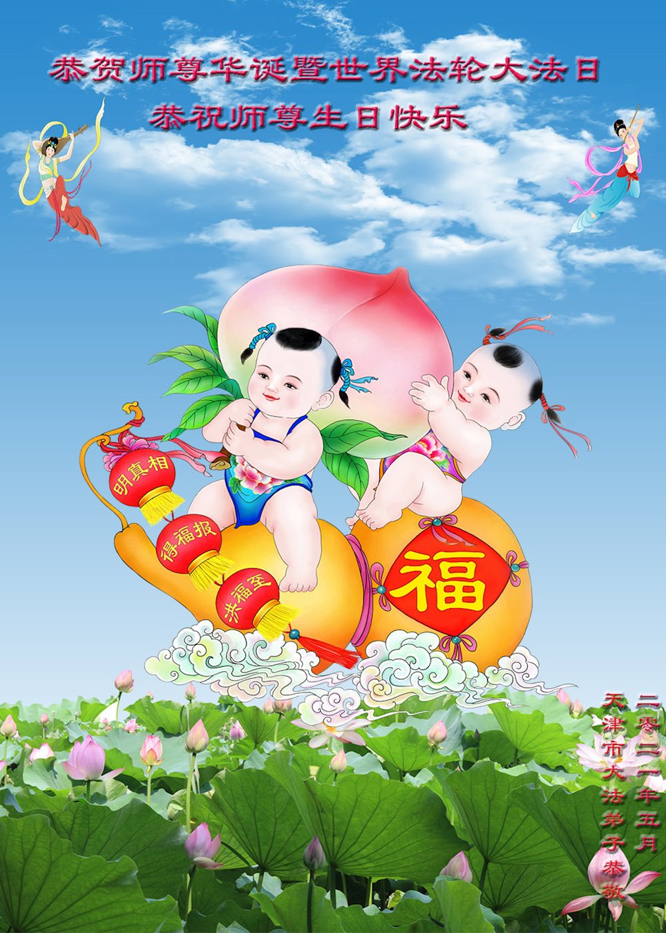 天津宝坻大法弟子恭祝师尊生日快乐!暨贺5.13法轮大法日!
