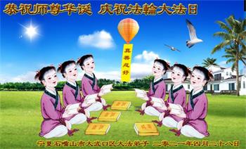 【明慧网二零二一年五月十一日】 宁夏银川市金凤区大法弟子恭贺师尊华诞!庆祝世界法轮大法日!