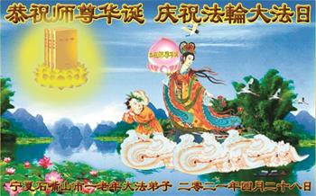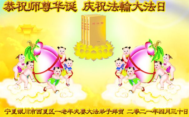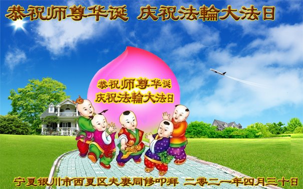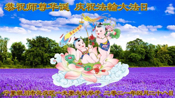 宁夏银川市兴庆区一夫妻大法弟子恭祝师尊华诞!恭贺世界法轮大法日!