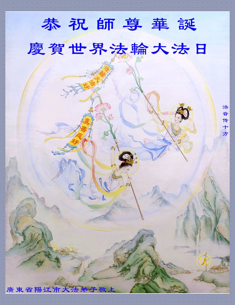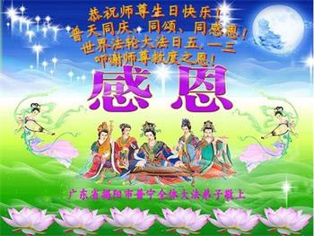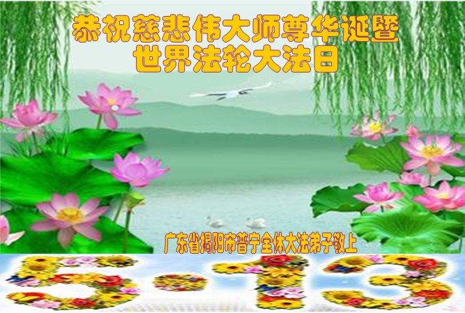 庆贺法轮大法洪传世界! 广东大法弟子敬上 广东省汕头市潮阳、潮南区全体大法弟子恭贺世界法轮大法日!祝慈悲伟大的师父生日快乐!