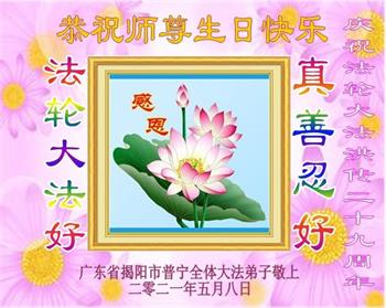 广东省揭阳市普宁全体大法弟子恭祝慈悲伟大师尊生日快乐!庆祝法轮大法洪传二十九周年!