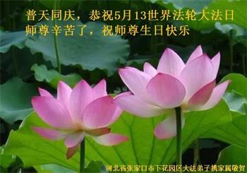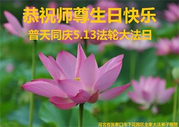 【明慧网二零二一年五月十一日】 河北省张家口市下花园区全家大法弟子恭祝师尊生日快乐!普天同庆5.13法轮大法日!