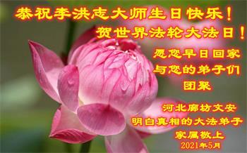 河北廊坊文安明白真相的大法弟子家属恭祝大法师父生日快乐!庆贺世界法轮大法日!