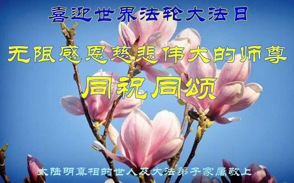 大陆明真相的世人及大法弟子家属庆贺世界法轮大法日!
