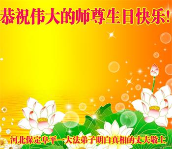 河北保定阜平一大法弟子明白真相的丈夫恭祝慈悲伟大的师尊生日快乐!
