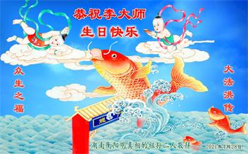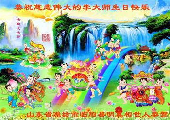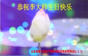 【明慧网二零二一年五月十一日】 山东省潍坊市临朐县明真相世人恭祝李大师生日快乐!