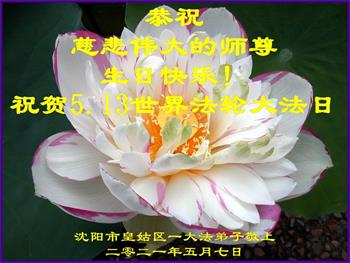 【明慧网二零二一年五月十一日】 辽宁省沈阳市一大法弟子恭贺世界法轮大法日!
