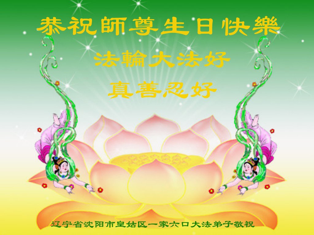 辽宁省沈阳市皇姑区家庭大法弟子恭祝慈悲伟大的师尊生日快乐!