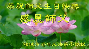 山东省诸城市大法弟子的家人支持法轮大法! 山东潍坊一老年学法小组大法弟子恭祝师父生日快乐!