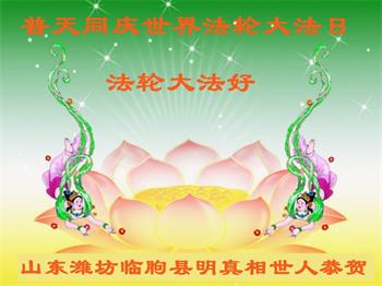 山东省诸城市大法弟子的家人支持法轮大法! 山东省潍坊市临朐县明真相世人恭祝世界法轮大法日!