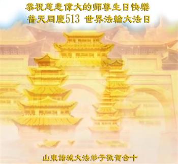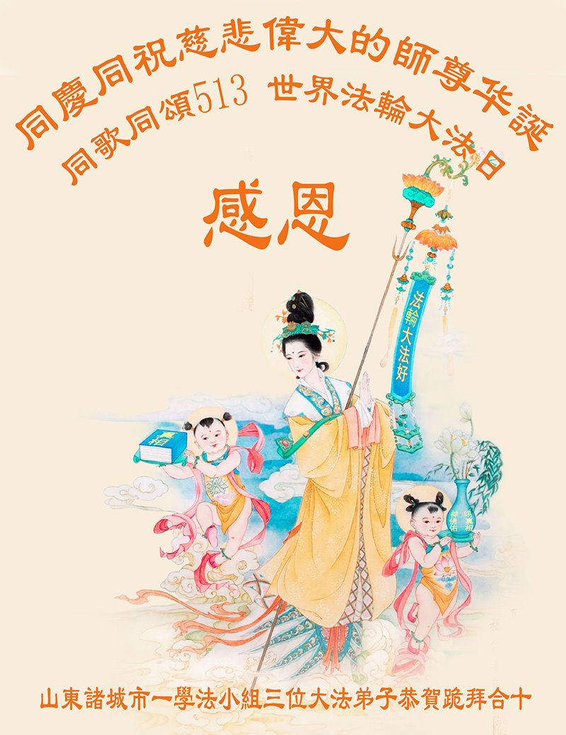 山东省潍坊市诸城市大法弟子恭祝慈悲伟大的师尊生日快乐!庆祝513世界法轮大法日!