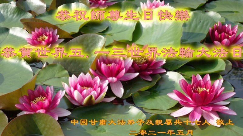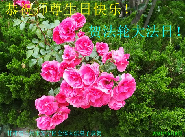 【明慧网二零二一年五月十一日】 甘肃省兰州市西固区全体大法弟子恭祝师尊华诞暨恭贺世界法轮大法日!