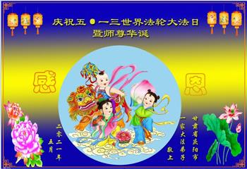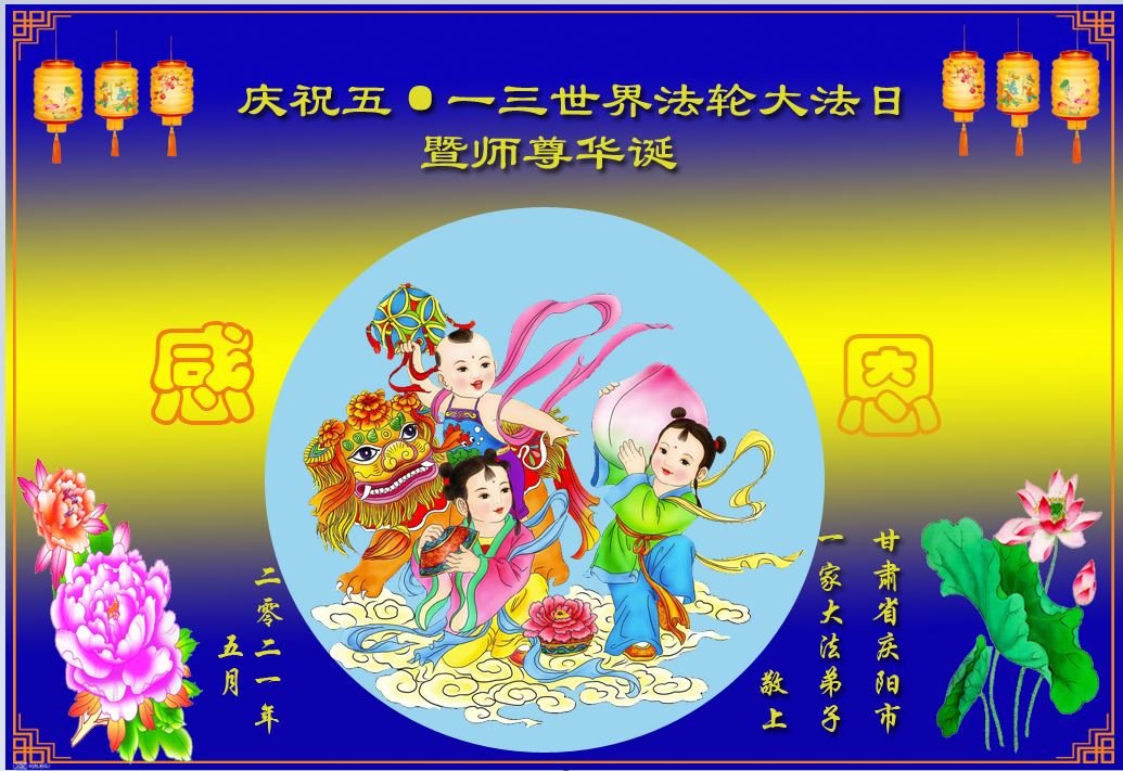 甘肃庆阳市西峰区一家大法弟子恭贺师尊华诞暨世界法轮大法日!叩拜慈悲伟大的师尊救度之恩!