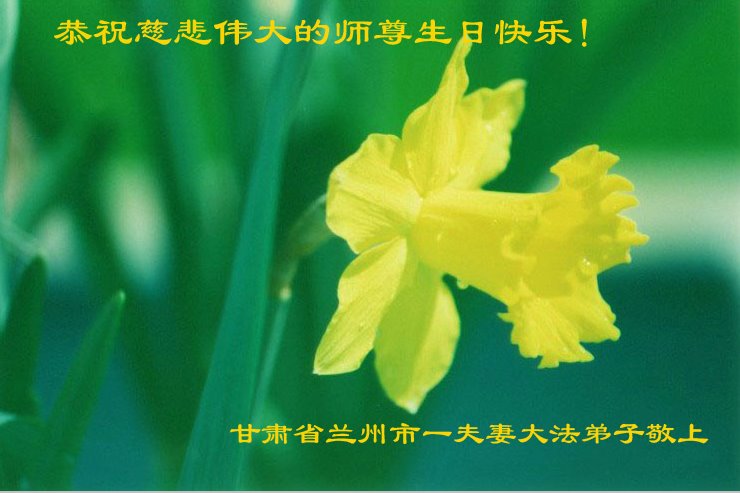 甘肃省兰州市一夫妻大法弟子恭祝慈悲伟大的师尊生日快乐!