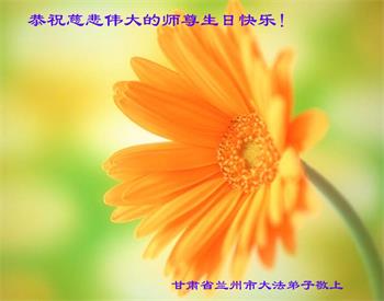 普天同庆世界法轮大法日! 在师父的生日来临之际,弟子恭祝师父生日快乐! 我在大法中修炼已十年了,我今年四十二岁,是慈悲伟大的师父把我从苦海中救度,是师父给了我第二次生命,是师父每时每刻看护弟子、加持弟子。弟子用人间的语言也难表感恩之情,弟子唯有精進、精進、再精進,做好师父要求的三件事,助师正法,完成史前誓约。 甘肃兰州市城关区一大法弟子敬上 甘肃兰州市城关区大法弟子恭祝慈悲伟大的师尊生日快乐!同贺世界法轮大法日!