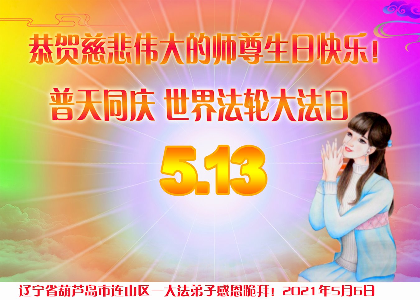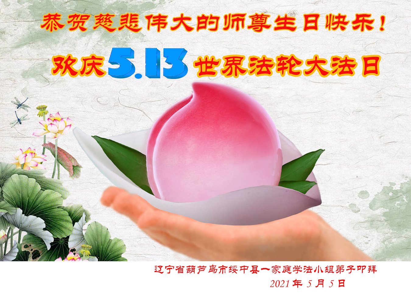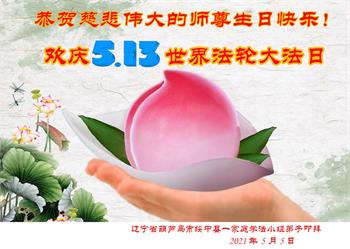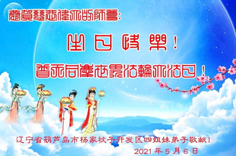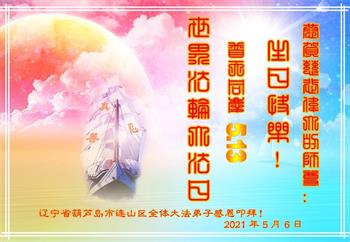 【明慧网二零二一年五月十一日】 辽宁葫芦岛一大法弟子恭贺世界法轮大法日!
