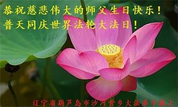 辽宁省葫芦岛市南票西部一大法弟子恭贺师尊华诞暨法轮大法洪传29周年!