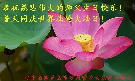 恭贺世界法轮大法日! 辽宁省葫芦岛市绥中县大法弟子全家恭祝师尊生日快乐!