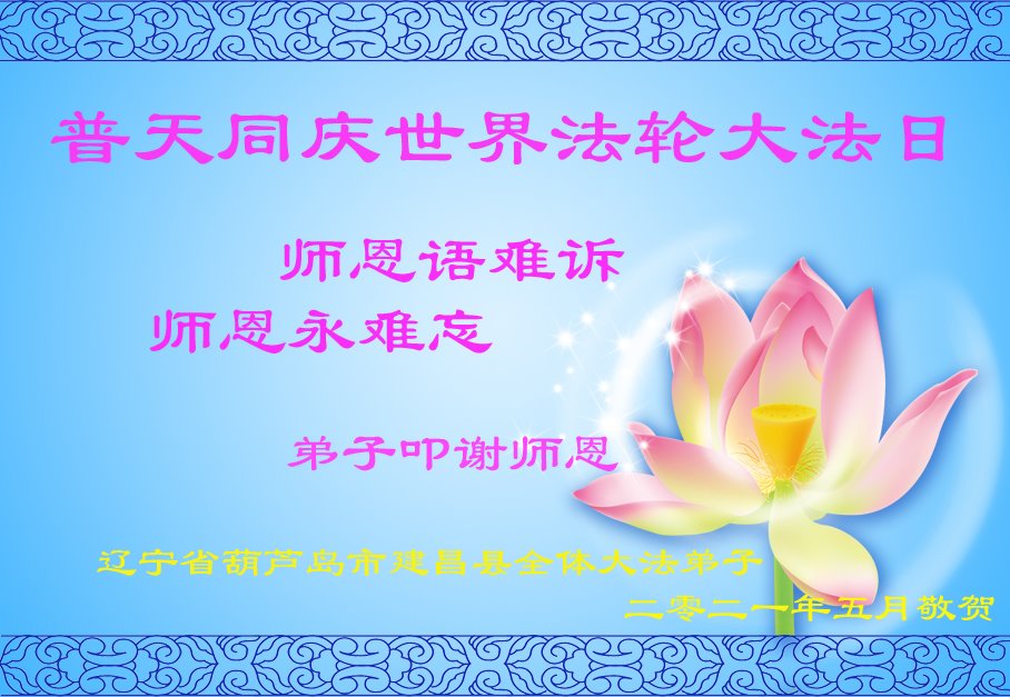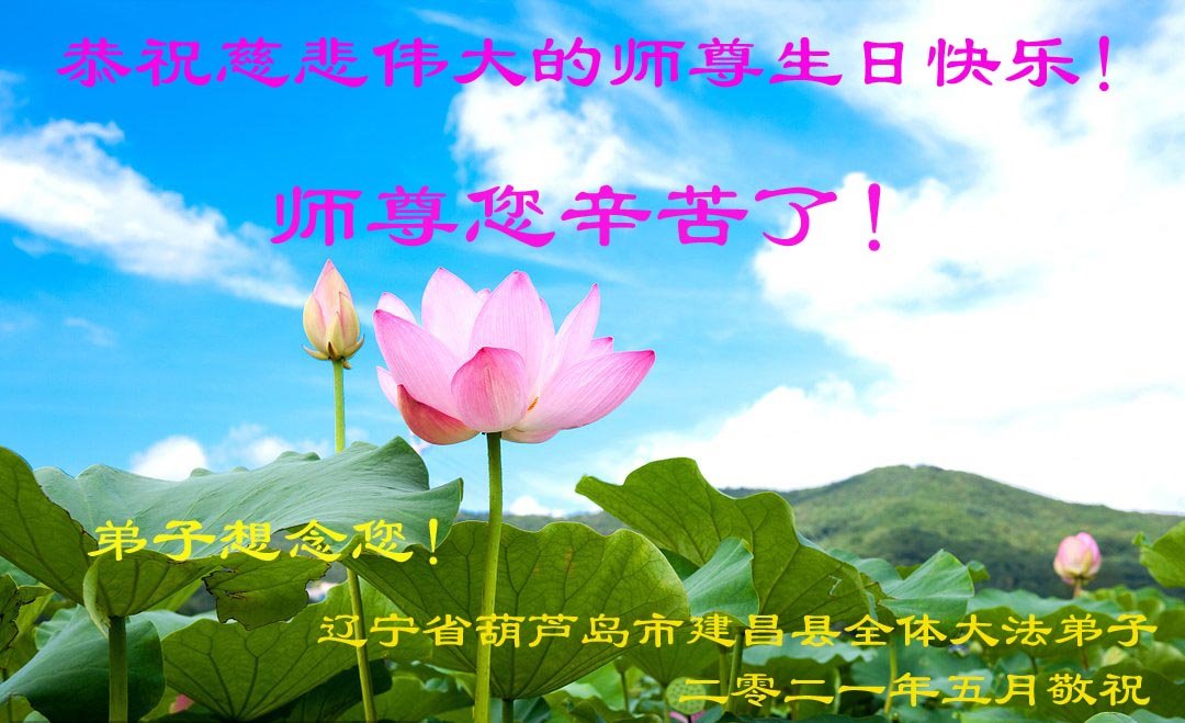 师尊您好!师尊您辛苦了!千方百计汇成一句话:弟子想念师尊! 辽宁省葫芦岛市建昌县全体大法弟子庆贺世界法轮大法日!