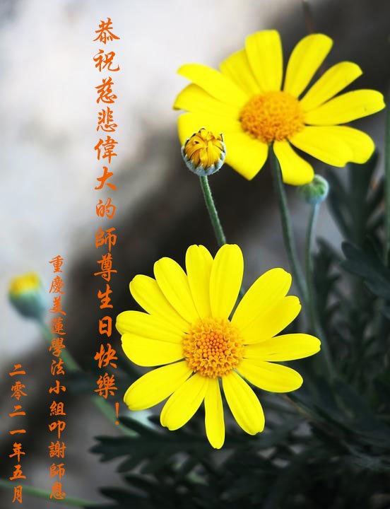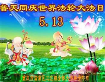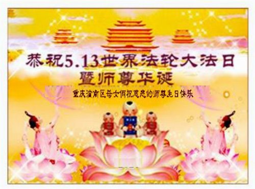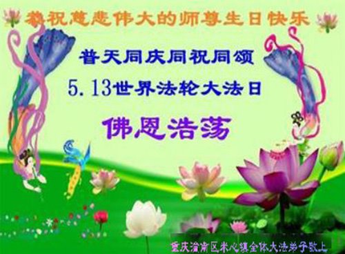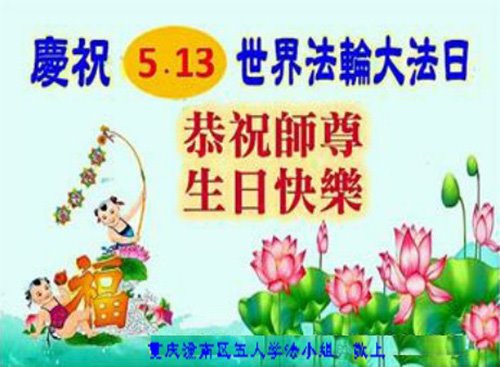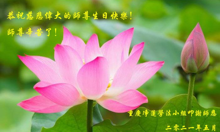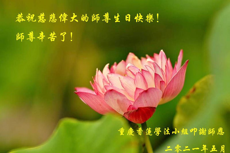 【明慧网二零二一年五月十一日】 重庆市潼南区一大法弟子恭祝慈悲的师尊生日快乐!普天同庆世界法轮大法日!