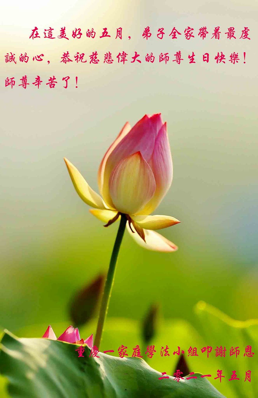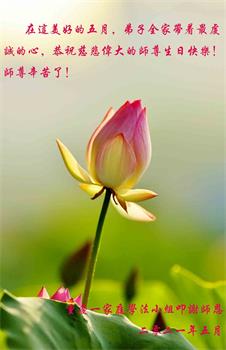 在这美好的五月,弟子全家带着最虔诚的心道一声:师尊辛苦了! 重庆一家庭学法小组叩谢师恩! 重庆市潼南区一老年大法弟子恭祝伟大的师尊生日快乐!弟子遥拜师尊!您辛苦了!