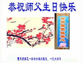 用尽世间的语言也法描述师尊对弟子的保护和关心,唯有弟子们实修报恩师。 重庆潼南区米心镇全体大法弟子恭祝慈悲伟大的师尊生日快乐!