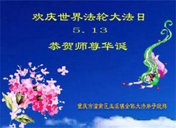 重庆潼南区玉溪镇全体大法弟子恭祝慈悲伟大的师尊生日快乐!欢庆世界法轮大法日!