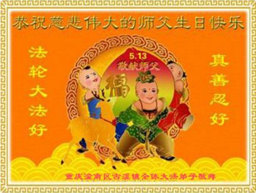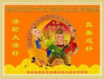 重庆潼南区古溪镇全体大法弟子恭祝慈悲伟大的师尊生日快乐!