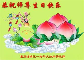 重庆市潼南区九十岁老年大法弟子恭祝慈悲的师尊生日快乐!