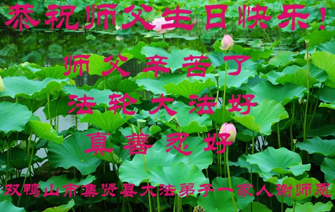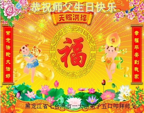 黑龙江省七台河市一大法弟子五口恭祝师父生日快乐!