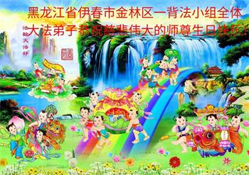 黑龙江省伊春市金林区大法弟子念慈恭祝慈悲伟大的师尊生日快乐!恭贺世界法轮大法日!