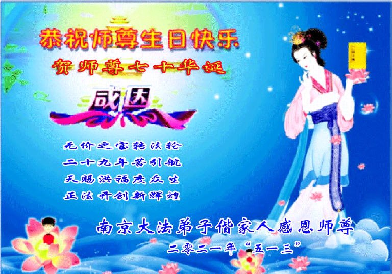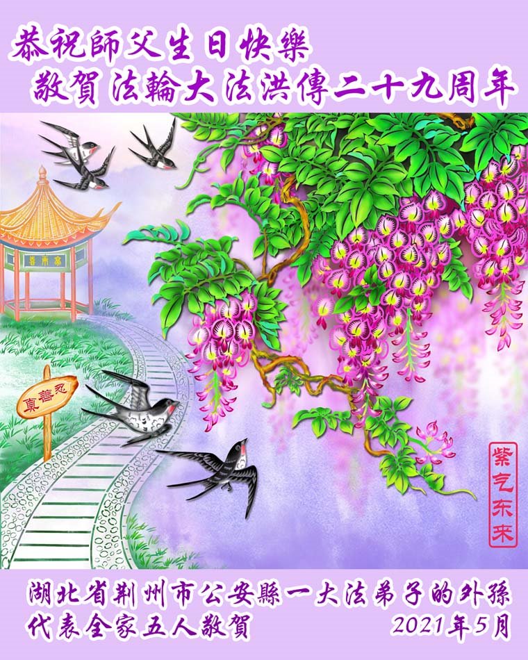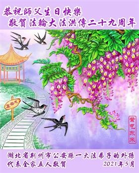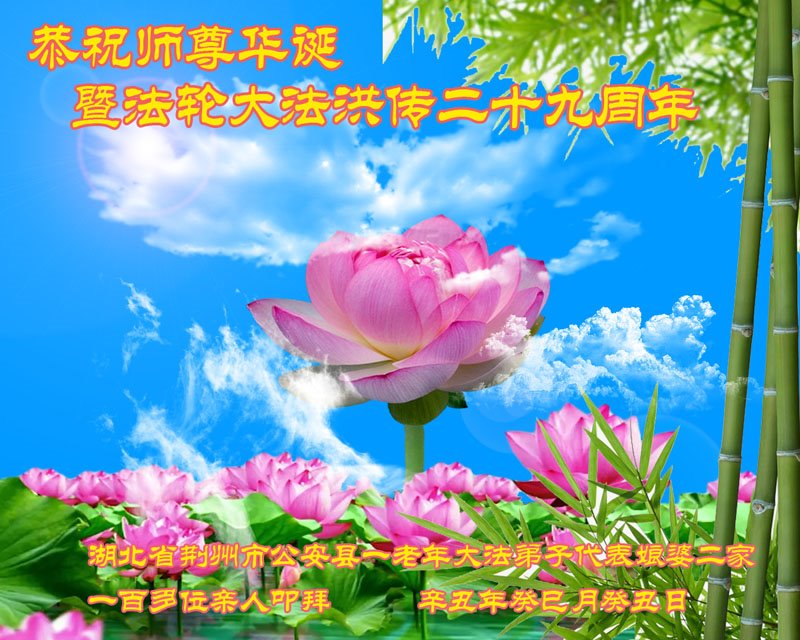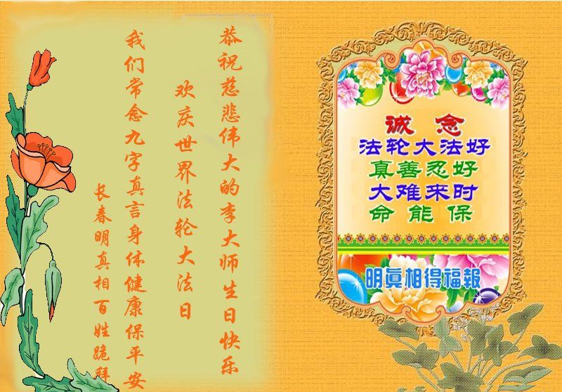 | 【明慧网二零二一年五月十二日】(明慧网记者综合报道)大法传世二十九载,上亿的真修弟子修心向善,亲身体验到大法的美好。越来越多的民众明白了法轮大法的纯正和大法弟子的善良,不再受中共谎言迷惑。尊重和支持大法的民众得到了大法给予的福报。 在五月十三日李洪志师父七十岁华诞到来之际,明慧网收到各界百姓发来的贺词,讲述他们得福报的故事和对大法师父的无比感恩!同庆第二十二届世界法轮大法日! 湖北省武汉市市民在写给师父的贺词中说:“我是大法弟子的家属,我虽然没有走入大法修炼,但是我知道大法太好了,太正了,真是‘一人炼功全家受益’呀!我唯能表达的,就是在您的生日或逢年过节,我早早就起床,买来最好最新鲜的水果,敬上三炷香,虔诚的跪拜叩首:感谢您对我们全家的保护!感谢您赐予我一个幸福和睦的家庭!” 黑龙江一个大家庭写道:我们全家老少四世同堂二十几人,近十人得法修炼,身心受益巨大;我们还未修炼的家人也都相信法轮大法好。在这瘟疫肆虐、多灾多难的年代,我们在大法师父的慈悲保护下,全家内心踏实,心怀善念。盼望大法师父早日回国!迎接普天同庆美好的时刻早日到来。 吉林省长春市市民:“车圈都(被轿车撞)翘了,可我哪都没问题”吉林省长春市明真相百姓祝李大师生日快乐!欢庆世界法轮大法日! 李大师您好! 在世界法轮大法日与您的生日来临之际,我向您祝福生日快乐! 您为众生操尽了心。20年前的一天下午,我骑车上班,被一辆上坡来的轿车把我给撞了,从车棚上弹到地上,车圈都翘了,可我哪都没问题。我让他走了。我把车锁到小区里上班去了。是您保护了我。因为我母亲修炼大法。 您为众生操尽了心。我相信法轮大法好、真善忍好。 长春明真相百姓敬上 2021年4月29日 诚心敬念“法轮大法好” 强直性脊柱炎好了湖北大法弟子一家五口恭贺世界法轮大法日! 在普天同庆的日子里,我们全家五口恭祝慈悲伟大的师尊:生日快乐! 我们生在大法洪传时期,幸遇师尊慈悲救度,感到幸福万分,我们家家庭和睦,在各自的工作和学习中按照真善忍做人,证实法轮大法的美好: 孩子们小时候,身体健康,性情好;读书时,成绩优秀,毕业后,工作好。 丈夫一直支持大法,在二零一三年六月,突发强直性脊柱炎,腰椎颈椎完全僵直,面色灰土,全身乏力,坐着也痛,躺着也痛,爬又爬不动,走也走不得,生不如死。多方求医无果后,丈夫诚心敬念“法轮大法好”,大约半年后,疼痛缓解,腰椎颈椎能适度的扭动。现在,丈夫做事和正常人一样了,曾经家里要倒塌的顶梁柱,又站起来了。 值此世界法轮大法日之际,叩谢师恩,感恩法轮大法! 我们全家用尽人间语言也无法表达师尊对我们的救度之恩,唯有做好师父教给的三件事、修好自己,才对得起师父的慈悲苦度、才能早日随师父回家。 内蒙古赤峰大法弟子的老伴:坚信师父,四个月癌症消赤峰大法弟子一家六口恭祝师尊生日快乐! 我们一家六口恭祝师尊生日快乐!感谢师父救了我老伴的命,我老伴的肚子肿胀的都不敢用手碰,检查是癌症,医院都不收了。回家后,坚信师父坚信大法,四个多月后我老伴的病全好了!太感谢师父了,叩谢师尊救了我们全家! 湖北省荆州市公安县青年:念九字真言 一夜间红疹消失湖北省荆州市公安县一大法弟子的外孙代表全家五人恭祝师父生日快乐! 敬贺法轮大法洪传二十九周年! 师父好! 我外婆修炼大法,从小就教我念“法轮大法好,真善忍好”九字真言,我很喜欢念。今年二十三岁了,一直身体健康没病,于去年顺利完成大学学业。 今年三月开始,每天听一讲师父讲法录音,常常感到法轮在身体里旋转,美妙极了;同时感到大法给我打开智慧,头脑格外清晰。 四月份的一天晚上,肚皮上突然密密麻麻布满如蚂蚁大小般的红色疹子,呈现直径约十五厘米的圆圈状,我一时感到非常恐慌,急得睡不着觉。过了好一会儿,我就稳住心,开始念九字真言,只念了几分钟,就睡着了。 第二天醒来一看,疹子全消了,连一点痕迹都没有,真是太神奇了。 我们全家都相信大法好,我代表爸爸、妈妈和姐姐、姐夫给师父敬香叩头,恭祝师父生日快乐!恭贺法轮大法洪传二十九周年!祝愿师父心想事成,万事如意! 陕西省曾患脑梗的民众:诚心敬念九字真言 身体越来越好陕西省咸阳市大法弟子及家人恭祝慈悲伟大的师父生日快乐! 家人(未修炼法轮功)去年得了脑梗,医院诊断有生命危险,我让家人和亲友都诚心敬念“法轮大法好,真善忍好”九字真言,结果家人脱离了生命危险,至今半年过去了,身体越来越好。 我和家人及亲友在此深深感恩师父的救命之恩!恭祝慈悲伟大的师父生日快乐! 黑龙江四世同堂大家庭:常颂九字真言 全家平安健康得福报黑龙江哈尔滨市明真相的世人恭祝李大师生日快乐! 大师辛苦了! 我们全家老少四世同堂二十几人,向慈悲伟大的李大师献上最诚挚的祝福和感恩:恭祝大师生日快乐!感谢大师佛恩浩荡,救度无量众生! 我们全家近十人得法修炼,身心受益巨大。我们还未修炼的家人也都相信法轮大法好,按“真善忍”的标准要求自己做好人,使身心受益,家庭和睦幸福! 在这瘟疫肆虐、多灾多难的年代,我们在大法师父的慈悲保护下,全家内心踏实,心怀善念,常颂“法轮大法好,真善忍好!”九字吉言,相信在瘟疫的大淘汰中定会遇难呈祥,渡过劫难,使全家平安健康得福报!拥有美好的