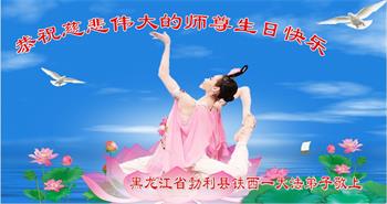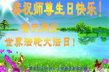 黑龙江省七台河市一大法弟子及家人恭祝师父生日快乐!