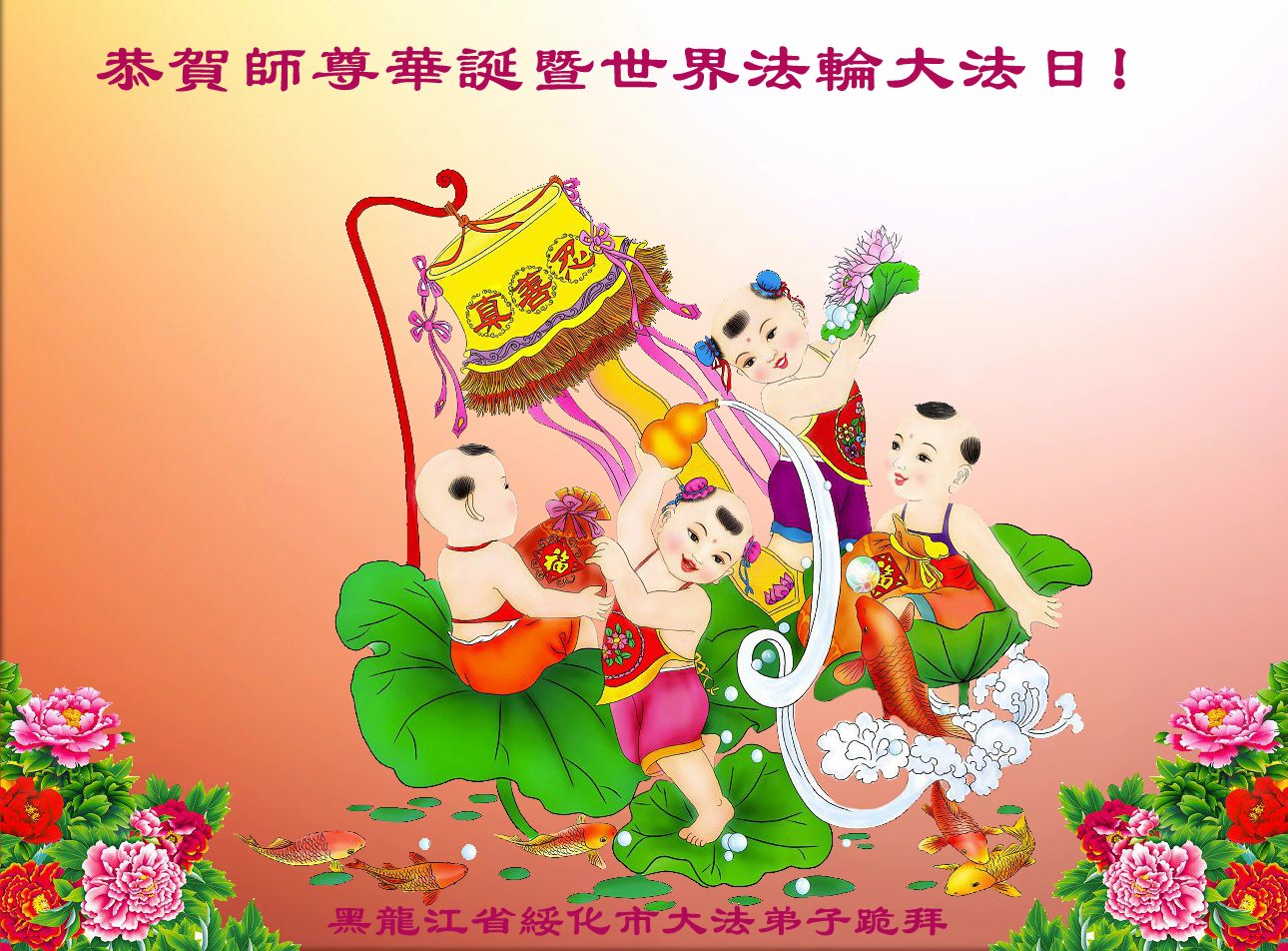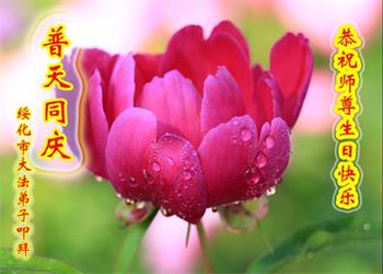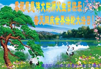普天同庆世界法轮大法日! 恭祝师父生日快乐!师父辛苦了! 谢谢师父在修炼的路上时时看护着弟子,叩拜恩师! 黑龙江省绥化市北林区大法弟子恭祝师父生日快乐!