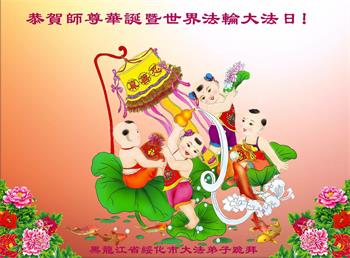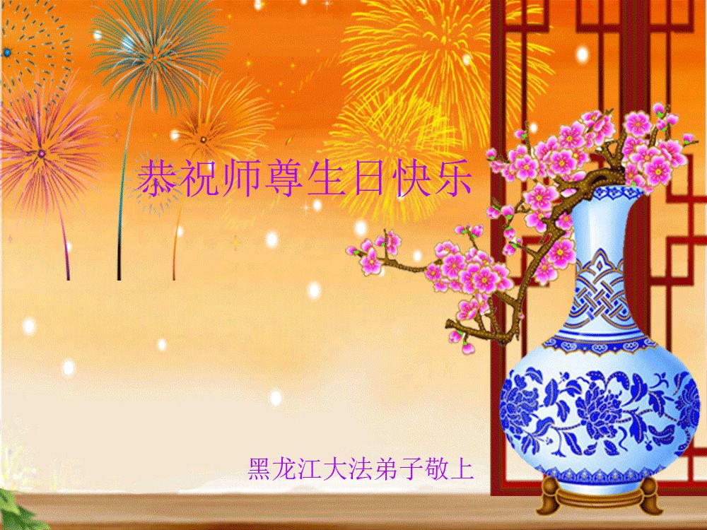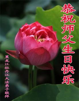 恭贺世界法轮大法日! 弟子恭祝慈悲伟大的师尊生日快乐!恩师您辛苦了! 弟子谢谢您从地狱把我捞起洗净,弟子谢谢您领我接上圣缘,弟子谢谢您赋予我们神圣的使命,弟子谢谢您慈悲保护领我走过魔难,弟子谢谢您为弟子铺就的回家光明大道! 黑龙江牡丹江地区大法弟子 黑龙江省大法弟子恭祝师尊生日快乐!